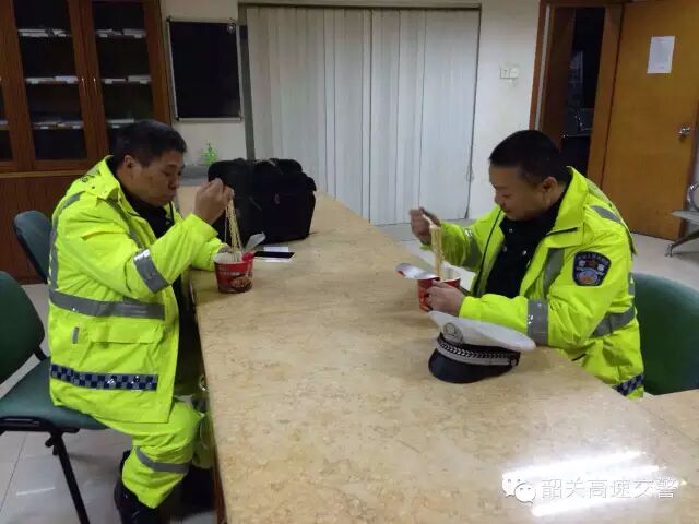 以上仅仅是韶关高速一大队、高速三大队个别民警在保障乐广和京珠北高速安全畅通的春运掠影,还有雷洪、徐敏、叶永勤、杨思远、李小华、侯伟华、马灿桂、胡平、张卫军、郭志武、李玮、郭福兴、丘威勇、钟云、韩海涛、崔炜、许顺和、胡言科、谭敏、徐灯亮、华永强、欧雷萌、李信辉、胡新城、侯伟明、李艺、何光斌等等所有奋战在路面一线的交警(原谅笔者无法将所有执勤民警的名字一一列出),为了保畅通保安全无不通宵工作,在这0℃以下的低温冷雨天,有的感冒,有的全身湿透,有的因工作无法回驻点吃饭,让他们如此拼搏的只有一个目标----那就是让群众顺利、安全返家!